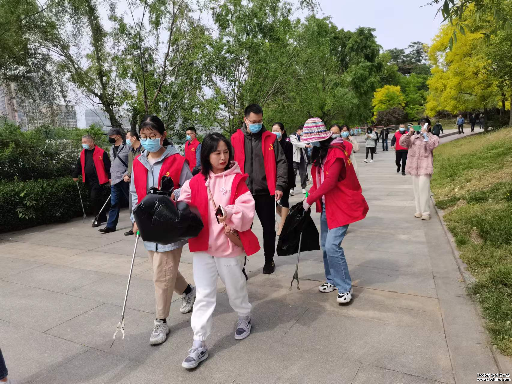 活動(dòng)第一階段開展了義務(wù)勞動(dòng),志愿者們?cè)诰摭垙V場(chǎng)集合,沿濱河大道開展衛(wèi)生清理工作。在勞動(dòng)中,有的用垃圾鉗撿草坪里的碎石雜物,有的清理人行道上的煙頭和殘枝敗葉,現(xiàn)場(chǎng)一派熱火朝天的景象。