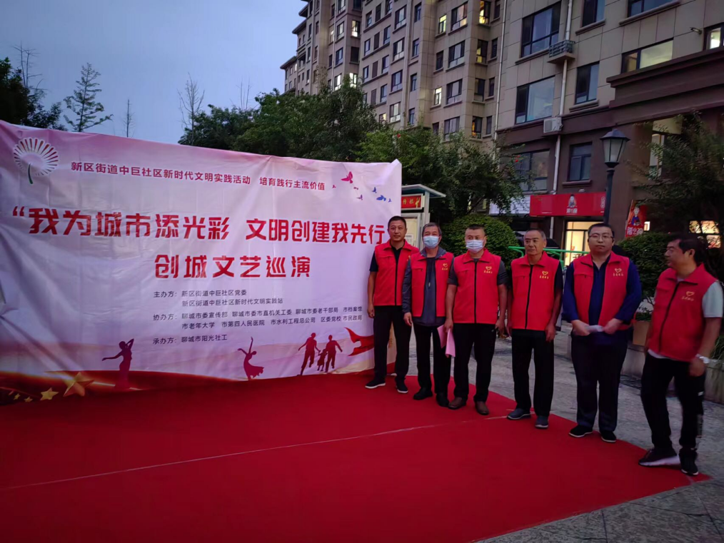 社區(qū)公共需要服務(wù)9月8日,公司志愿者參與社區(qū)中秋節(jié)文藝演出活動(dòng),志愿者現(xiàn)場(chǎng)維持演出秩序,發(fā)放文明創(chuàng)城宣傳單頁(yè)等,助力演出活動(dòng)順利進(jìn)行;志愿者賈紅麗積極參與到演出活動(dòng)中,現(xiàn)場(chǎng)演唱豫劇“鍘美案”唱段,贏得了社區(qū)觀眾的熱烈掌聲。通過上述活動(dòng),志愿者們?cè)跒樯鐓^(qū)公共需要提供服務(wù)的同時(shí),為也創(chuàng)城工作貢獻(xiàn)了總公司力量。