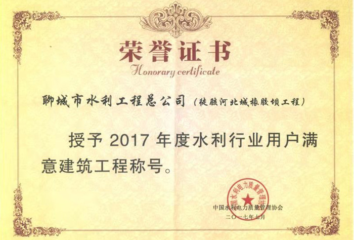 2017年度水利行業(yè)用戶滿意建筑工程稱號